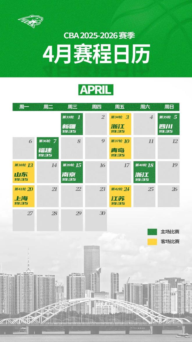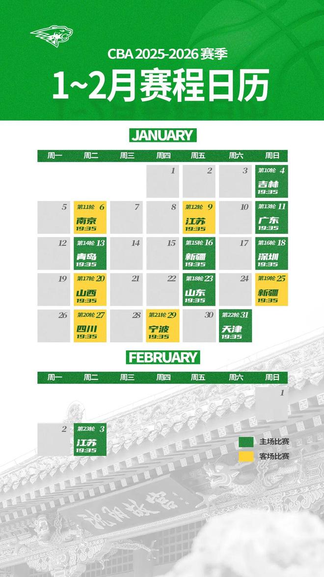 2025-2026赛季CBA常规赛辽宁本钢队赛程表来了